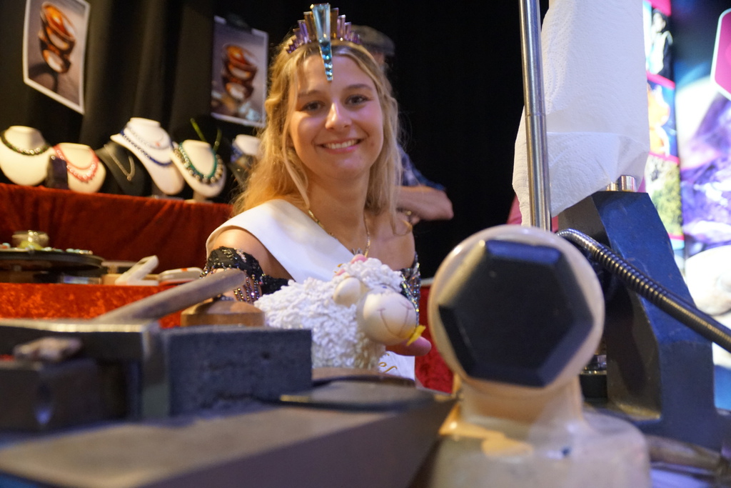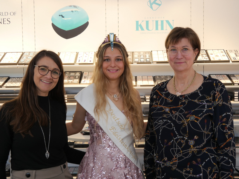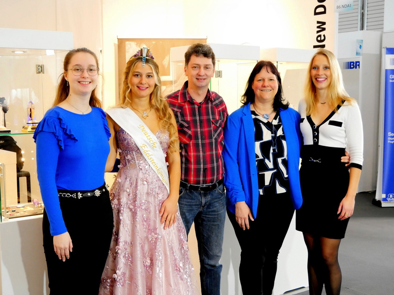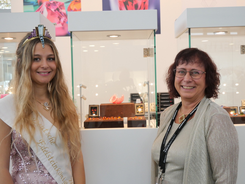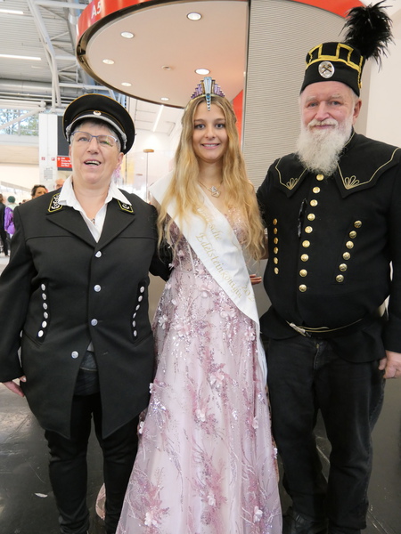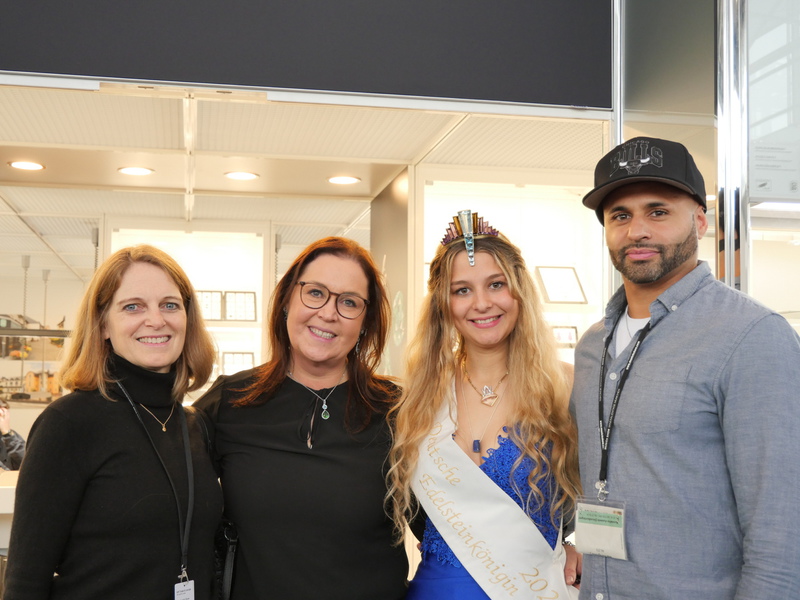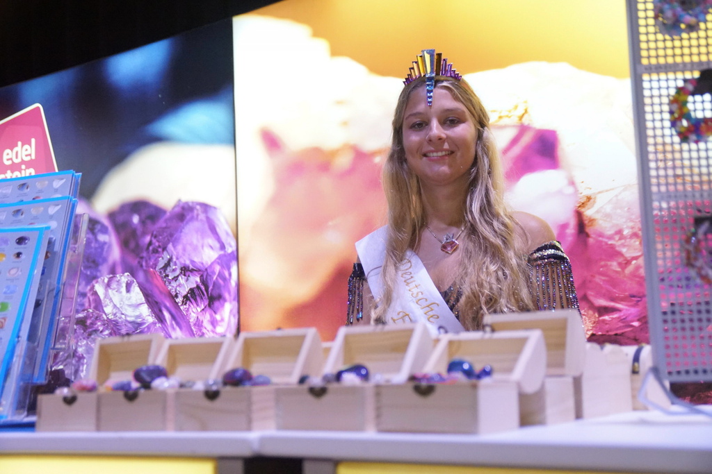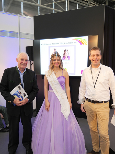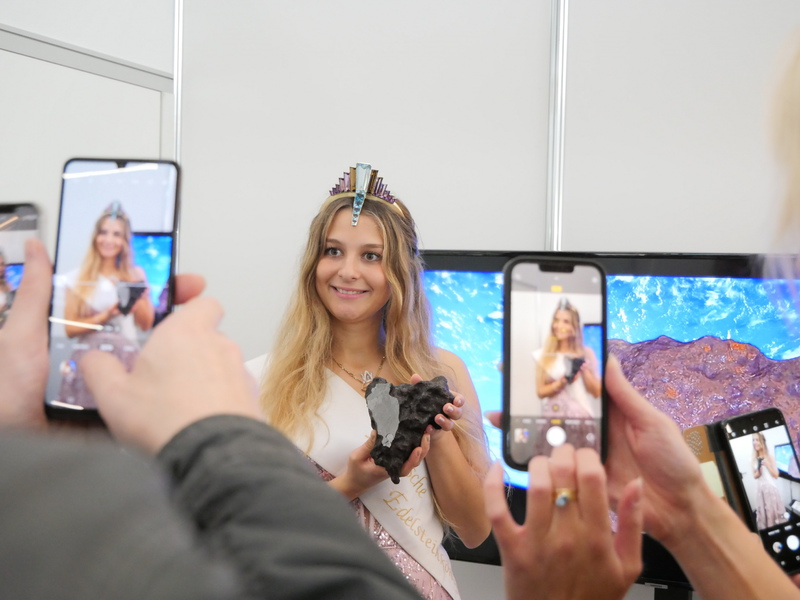 In den Gängen ist der Besucherstrom überschaubar. Dafür herrscht an und in den Ständen bisweilen Hochbetrieb. Da hieß es auch für die Vertreter der Deutschen Edelsteinstraße, allen voran die strahlende Edelsteinkönigin Vivian, den richtigen Moment für den Besuch der heimischen Betriebe abzupassen. Die Aussteller freuen sich über den royalen Besuch. Die Amtsinhaberin Vivian Heidrich war zwar grippegeschwächt, hielt aber tapfer durch und präsentierte die Heimat einmal mehr herausragend. Geduldig erfüllte sie Autogrammwünsche und war gern gesehener Gast bei Events und als Interviewpartnerin. Bei dem Rundgang hörte man es oft: "Da ist die Edelsteinkönigin aus Idar-Oberstein". Dass die Doppelstadt an der Nahe fern der Heimat einen solchen bedeutenden Ruf genießt, ist vielen Einheimischen nicht bewusst.