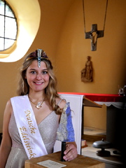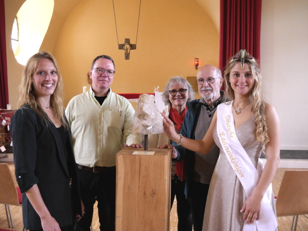 Die Installation ist normalerweise in der Barbarakirche in Idar-Oberstein zu bewundern. Das Nationalparkfest war nun eine gute Gelegenheit die Installation weitern Besuchern zu präsentieren. Bei einer kleinen Zusammenkunft erklärte Pastoralreferent Claus Wettmann den Anwesenden die Bedeutung des Kunstwerks. Anschließend hatte die Deutsche Edelsteinkönigin Vivian Heidrich Gelegenheit auf die Bedeutung der Edelsteine hinzuweisen. Es folgte ein Rundgang durch die Kirche und zum Abschluss wurde zusammen das Lied „Eine große Stadt entsteht“ angestimmt. Die Ausstellung ist noch bis zum 05. Juli in der Nationalparkkirche zu bewundern.