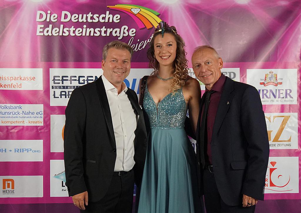 Es lief nicht alles perfekt. Aber es war nahe dran. Die Zahnräder des Vorstandes des Fördervereins Deutsche Edelsteinstraße und die seiner vielen emsigen Helfer liefen gut ineinander. Am Ende gab es Chapeau von allen Seiten. Eine überaus glanzvolle, engagierte und in allen Momenten bezaubernde Edelsteinkönigin gab nach vier unvergleichlichen Jahren die Krone weiter. Es ist schwer für Bettina Reiter Superlativen zu finden, aber man sucht sie, um ihre herausragende Arbeit zu würdigen. Nun gab sie die Krone bzw. das Diadem weiter an die junge Cécile Elligsen aus Kirschweiler. Die Schülerin der gymnasialen Oberstufe der Gesamtschule Türkismühle, verfolgte die Geschicke der Edelsteinkönigin auf den Socialmedia Kanälen, aber hätte selbst nie im Traum gedacht dieses Amt einmal selber zu bekleiden. Der Chef vom Edelsteinsteinhaus Hess, wo sie nebenbei im Gastrobereich jobbt, hat sie dazu animiert. Hendrik Hess lag ihr damit in den Ohren, bis sie es wirklich getan hat. Im nachfolgenden Casting hatte sie sich gegen zahlreiche ebenfalls beeindruckende Konkurrentinnen durchgesetzt. Die Nachricht zur Berufung erhielt sie per Mail mitten im Unterricht. Da musste sie erst mal unter einem Vorwand den Klassenraum verlassen, um das zu verarbeiten. Nun checkt man nicht mal eben im Unterricht die E-Mails, doch in Erwartung einer solchen Nachricht sehen wir das nach, auch weil die Cecile eine gute Schülerin ist. Sie ist clever und fleißig. Mit Mathe und Sport hat sie ihre beiden Lieblingsfächer zu Hauptfächern erkoren.