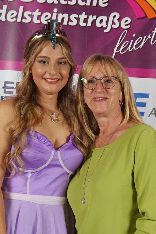 Bettina Reiter setzte ihrer Nachfolgerin das Diadem auf. Der Wegbereiter der Deutschen Edelsteinstraße, Wolfgang Hey, und Diadem - Designer und Materialgeber Erwin Pauly hatten leuchtende Augen in diesem großen Augenblick. Selbst Ellen Goedecke, erste Deutsche Edelsteinkönigin und überzeugte Anhängerin der Region, war tief beeindruckt und freute sich, ebenso wie „Kollegin“ Nadine May, ehemals Härter, (12. Deutsche Edelsteinkönigin) über die würdevolle Amtsübergabe. Die ebenfalls anwesende Königin Nummer 20, Sonja Mzyk, ist als Schriftführerin im Vorstand des Fördervereins tätig. Diese Tatsache hat sie sich nun mit Bettina Reiter gemein, die bereits zuvor als zweite Vorsitzende gewählt wurde und den umtriebigen Alfred Reicherts ersetzte.