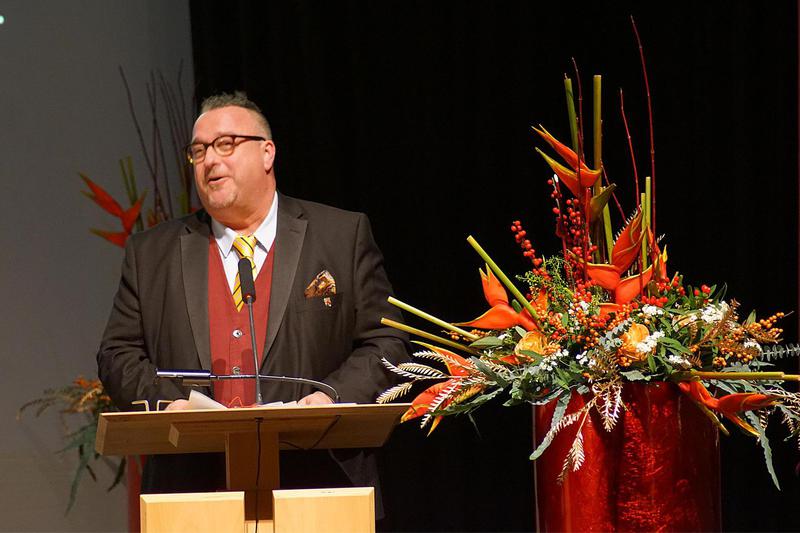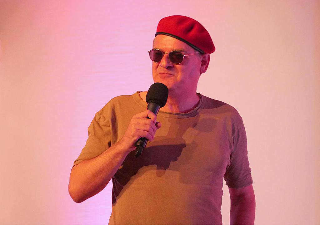 Dann knallten Korken und Konfetti und die neue Repräsentantin der Edelsteinregion, Cécile Elligsen, entstieg dem Zauberkasten von Peter Karl, der seine Sache hervorragend machte. Genauso wie Sacha Thamm, der aus seinem Buch „Dynamitfischen in Venedig“ rezitierte. Das begeisterte das Publikum ohnehin. Als er im zweiten Teil durch seine Ansichten des Bratens – nicht Grillens (!)- das in dieser Sache extrem bewanderte Publikum beeindruckte, war ein punktgenauer Treffer in die Seele des Idar-Obersteiner Fleischgenießers. Maiskolben und Brokkoli auf dem Grill, sind bäh! Sascha Thamm hatte einige seiner Bücher zum Verkauf mitgebracht: viel zu wenig. In wenigen Minuten ausverkauft – war klar!