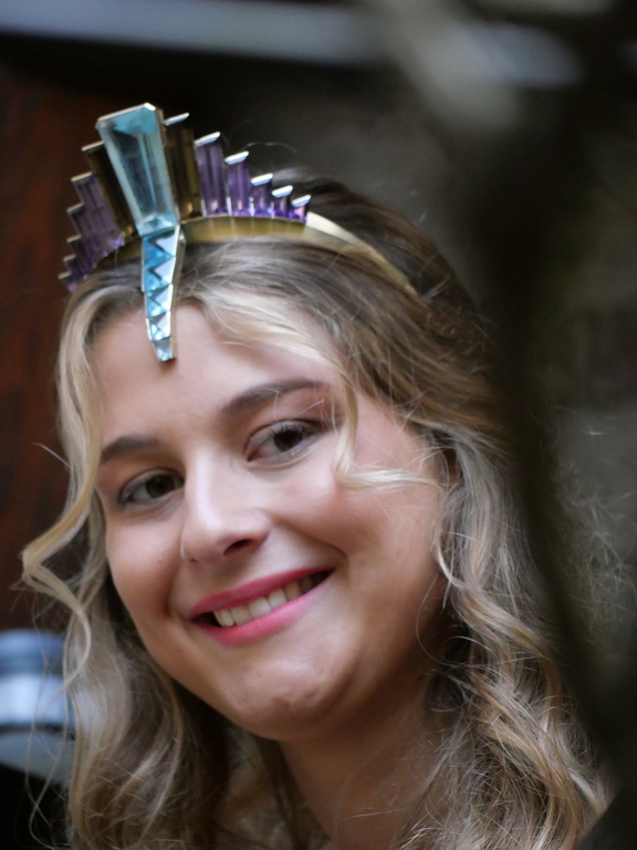 Eine Kurzform dieser Begrüßung sollte auch in englischer Sprache gehalten werden. Danach wurde noch ein kurzes Fotoshooting gemacht und die Jury hatte die Möglichkeit Fragen zu stellen. Fast selbstverständlich wird dort nach der Krone bzw. dem Diadem gefragt. Da ist es förderlich, wenn die Befragte das Material und die Zusammensetzung der Steine nennen kann. Solche Dinge sind aber auf der Homepage des Fördervereins zu erfahren.
