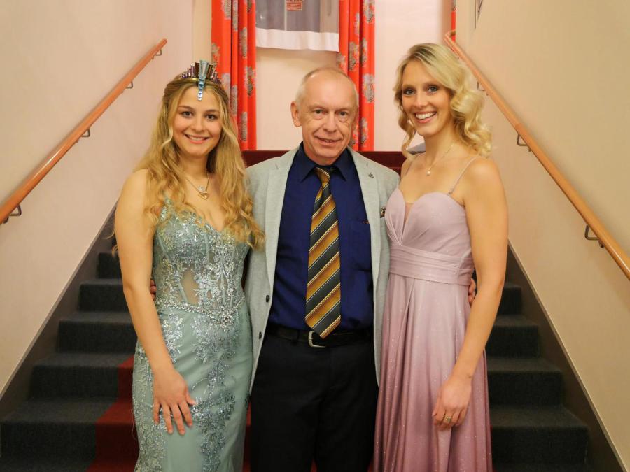 Nun war es soweit: nach einer erstklassigen Gala-Show mit der veritablen Golden Swing Big Band unter der bewährten Leitung von Uwe Kirsch und einer stimmlich bestens aufgelegten Ully Mathias zauberte der Moderator und Magier Peter Karl eindrucksvoll Cécile Elligsen auf die Bühne. Doch vor diesem Moment war es eine hochverdiente Hommage an ihre Vorgängerin Bettina Reiter. Eine Majestät sondergleichen, eine glanzvolle Persönlichkeit die – Corona geschuldet - ihr Amt vier Jahre ausfüllte. Da müsste selbst Lauterbach zugeben: Corona war nicht in allem schlecht. Ihr Rückblick per selbstgestalteter Präsentation ließ kaum ein Auge trocken. Nur der Überraschungsauftritt der normalerweise von ihr trainierten Kindertanzgruppe brachte sie kurzeitig außer Fassung. Bewegend war auch der Dank an ihre Eltern, Edgar und Regina, die sie immer unterstützt haben. So wie sie „regiert“ hatte, so trat sie ab. In Würde und voll Souveränität.